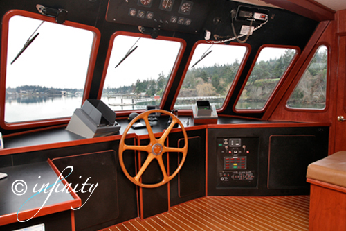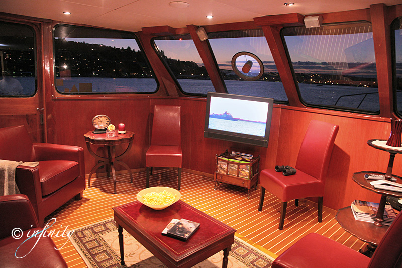 Bridge with guest seating and view windows, forward on the Upper Deck.