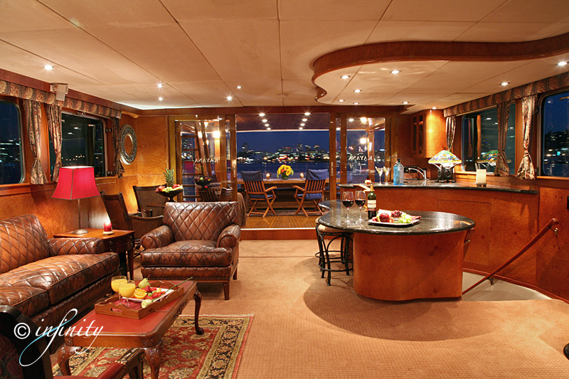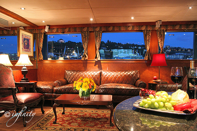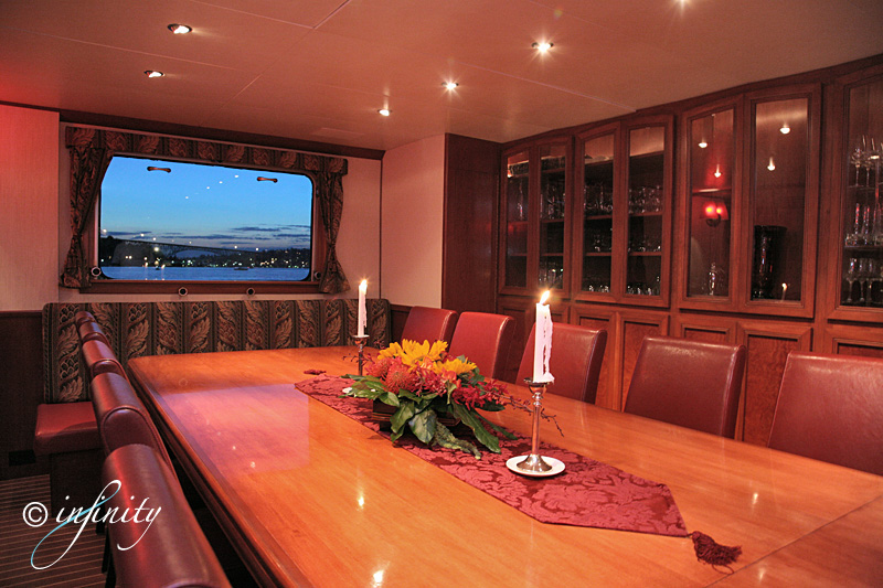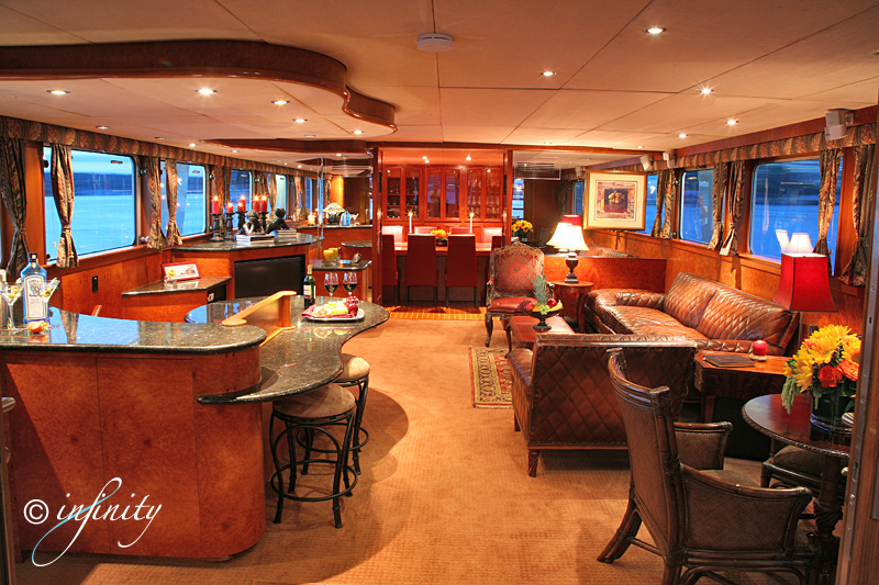 room, informal Aft Deck and Upper Deck casual dining. Salon