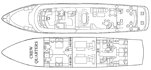 1 and 2 can be comined into one large VIP stateroom which spans the yacht's