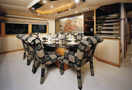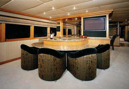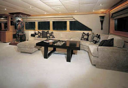 2014: Currently undergoing a major interior refit! New updates include: New carpet, new marble entry floor, new clear mirrored walls, new fabric on walls, new overheads, new led imtra lights, all woodwork stained darker, all sofas and chairs recovered, new bar chairs, new dining room set, new coffee table, removed brass from railings, hardwood floor in bridge, new dash layout with updated electronics, new radars, new exterior camera system, and exterior cushions being replaced. Upcoming updates include: New carpet in guest rooms, new wallpaper, new overheads, new bed linens, woodwork stained darker in guest cabins, bathroom floors, and cabinets updated, new imtra lighting, main salon window shades replaced, new artwork throughout yacht.